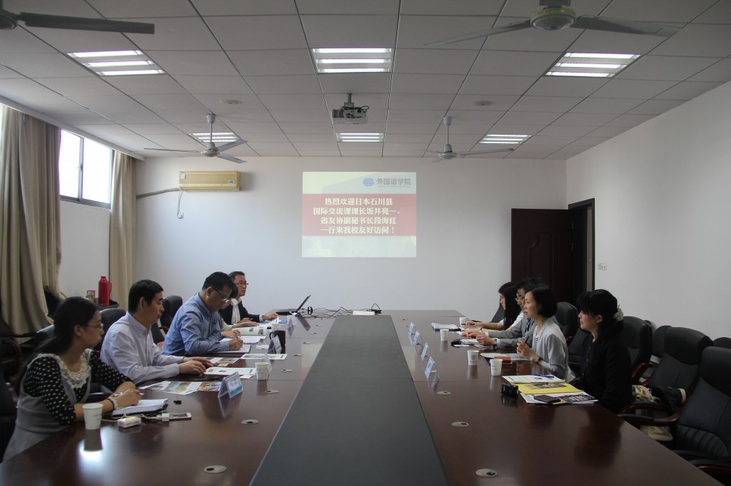 5月17日上午,在南京航空航天大学国际合作处的引荐下,日本石川县国际交流课课长坂井亮一、江苏省人民对外友好协会副秘书长段海红一行四人来我校必赢国际437官网进行了友好访问。必赢国际437官网院长范祥涛教授、副院长徐以中教授、日语系骨干教师等热情接待了坂井一行,并与来宾进行了座谈。