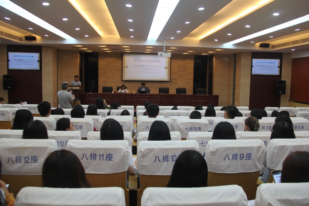 9月22日,东京学艺大学大井田義彰教授应邀在必赢国际437官网做了题为“文学中的家族”的精彩学术讲座。日语系主任窦硕华主持讲座。日语系张晋文副教授进行翻译,全系80余位师生聆听了讲座。