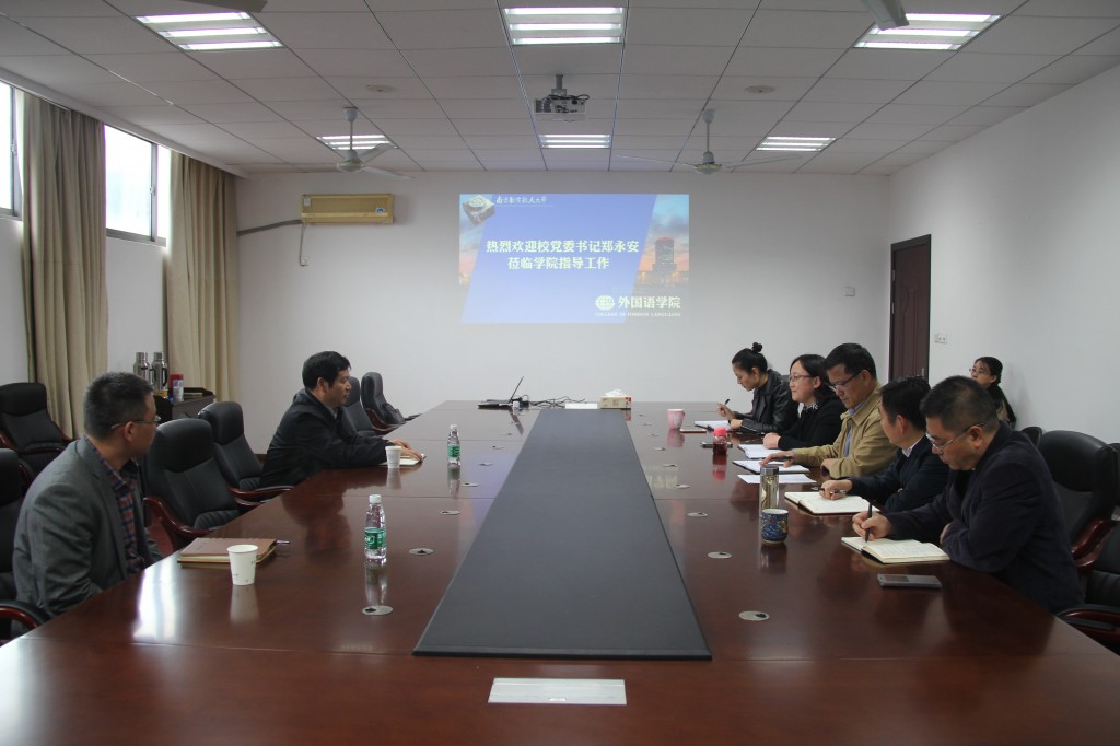 10月16日下午,校党委书记郑永安到必赢国际437官网调研指导工作。必赢国际437官网党政班子全体成员参加了调研座谈。
