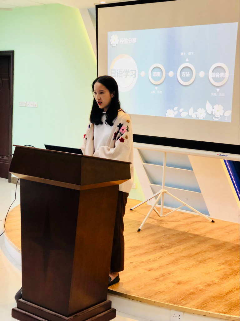 16级孙静雨同学从日语特点、词汇、语法、阅读、听力等方面与同学们分享了她学习日语的方法,干货满满的经验分享令同学们收获良多。齐元政同学讲述了日语零基础入门的学习方法,着重讲了日语学习与其他科目学习的平衡、学习与学生工作的平衡以及大学整体规划,使与会同学们大受启发。