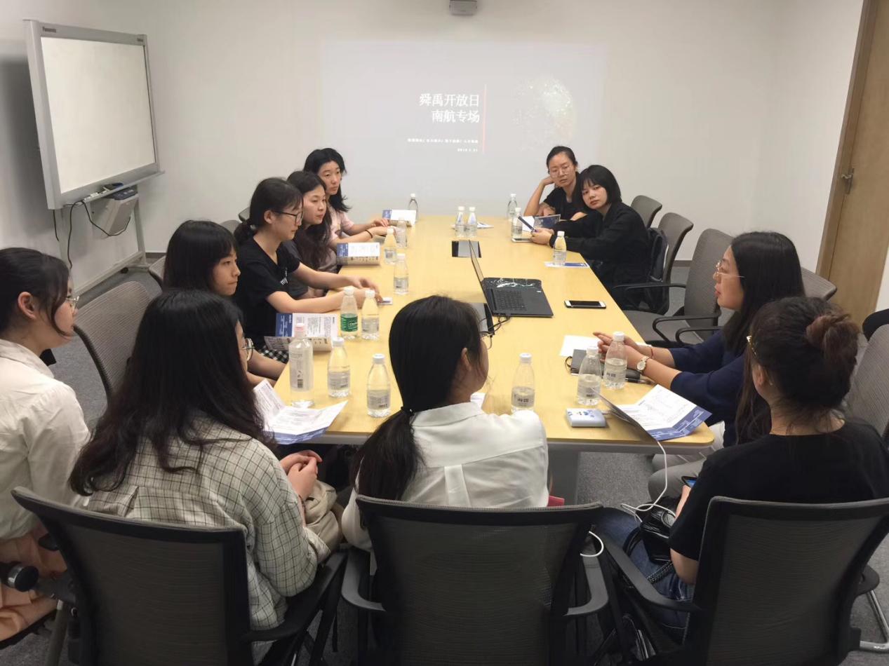 本次走访实践的特别嘉宾为我院2010届英语(民航方向)和2016届日语专业的毕业生,作为目前在舜禹任职的优秀院友,她们就职业发展经历和行业从业感受进行了分享。活动最后,舜禹集团总经理单杰也来到了现场,作为南航校友,他肯定了我校的优良学风和求学态度,鼓励同学们能多多了解专业对口行业,早做就业准备,同时对同学们加入舜禹表示热烈的欢迎。