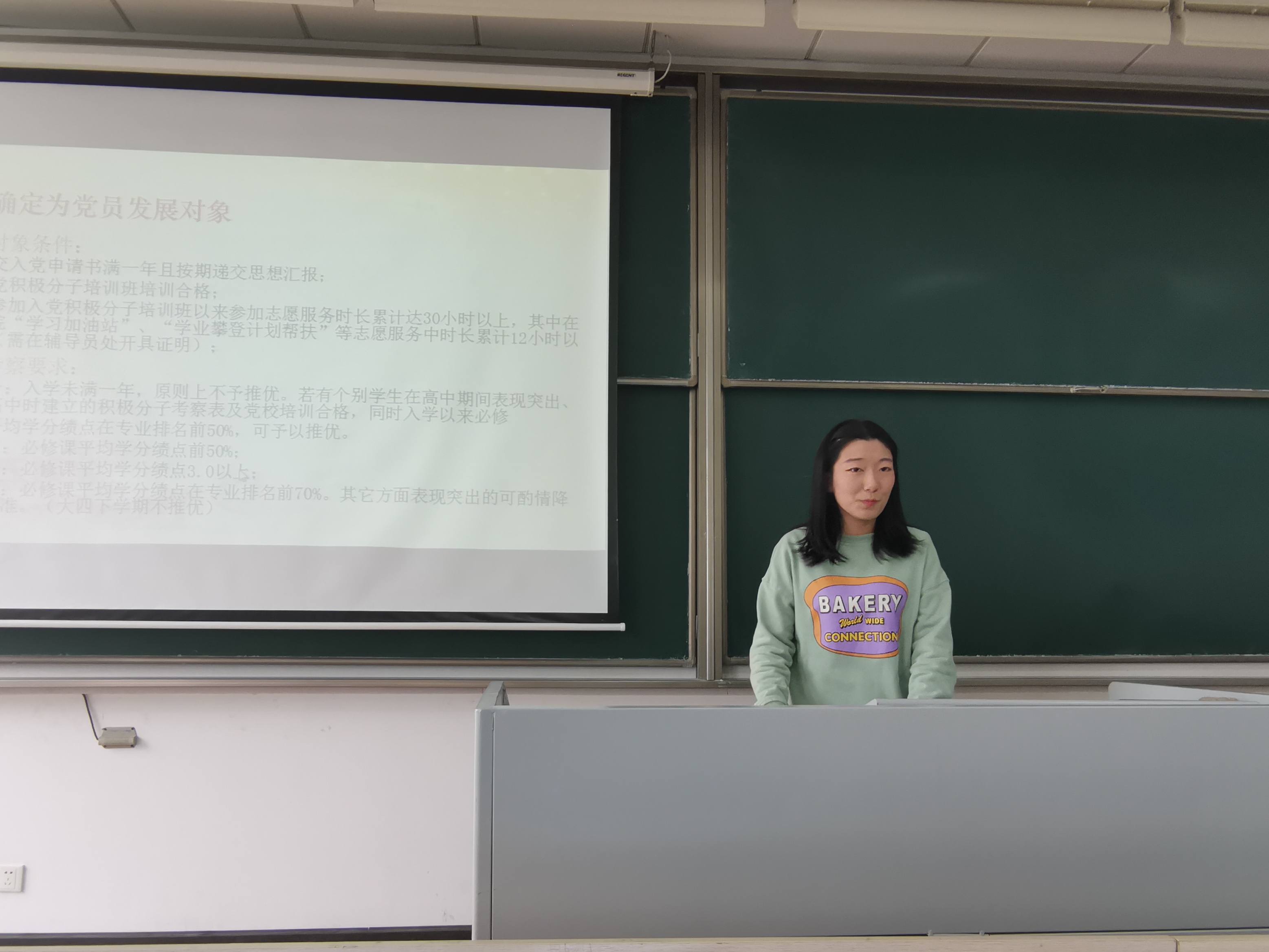 10月25日中午,必赢国际437官网在D1410教室顺利开展关于“党员发展流程”的专题分享会。2019级递交入党申请书的全体学生、其他年级对入党环节有困惑的同学参与,主讲人为本科生联合党支部宣传委员吴晨郡。