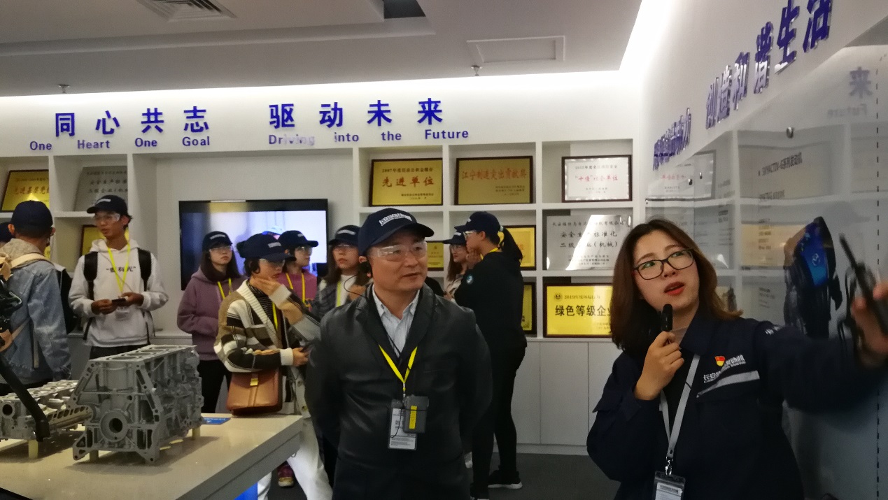 经验交流完毕之后,公司安排同学们参观了各个场馆。在陈列厅展示了公司的概况与成就,在党群工作室展示了党群工作成绩,在机加装配部参观了工作流程和公司的技术创新成果。这些技术不仅为公司省下了大笔的财富,还节约了资源,保护了环境。同学们意识到,一个公司若想持久发展需要技术创新,需要发挥先进员工的带动作用,激发员工的活力,将自身发展与国家发展结合起来。