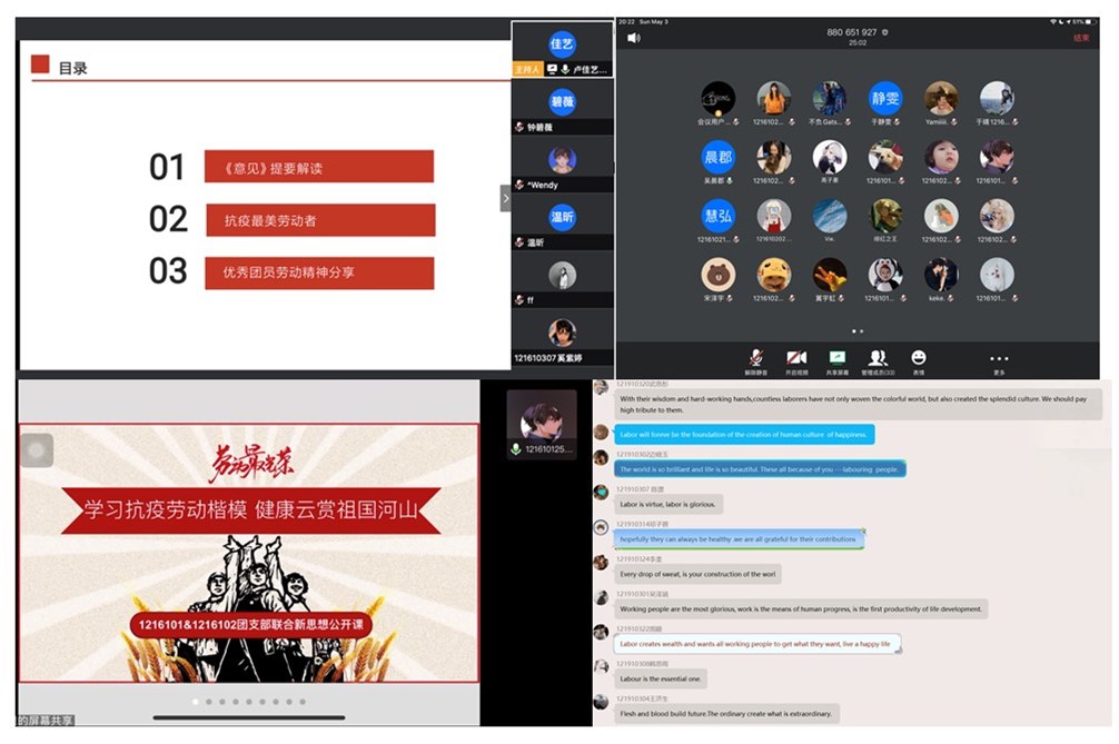 各支部团员青年积极参与线上新思想公开课,主动思考,各抒己见。有同学表示:“劳动不分贵贱,要尊重所有人的劳动成果,同时我们要努力成为作出更多贡献的新时代劳动者!”