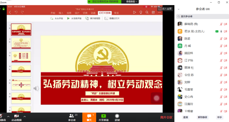 为深入学习贯彻习近平新时代中国特色社会主义思想,落实习近平总书记关于构建德智体美劳全面培养的教育体系,在青年中弘扬劳动精神的重要指示,4月24日至5月5日,在“五一国际劳动节”之际,必赢国际437官网各团支部陆续开展线上“劳动”主题新思想公开课,旨在引导外院青年崇尚劳动、尊重劳动,激发青年学生劳动意识与责任担当。