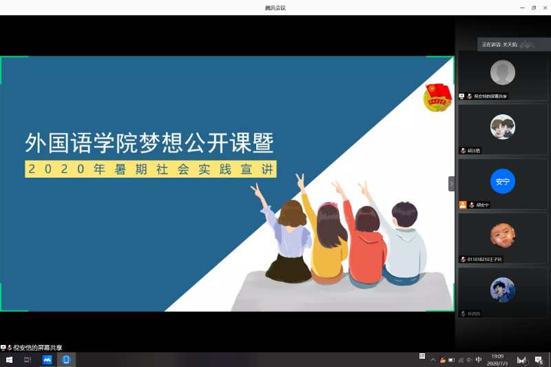7月3日晚,必赢国际437官网线上梦想公开课暨2020暑期社会实践动员会在线上召开。学院团委书记关天茹,院团委学生会实践部负责人,以及全体2019级本科生参加了此次公开课。