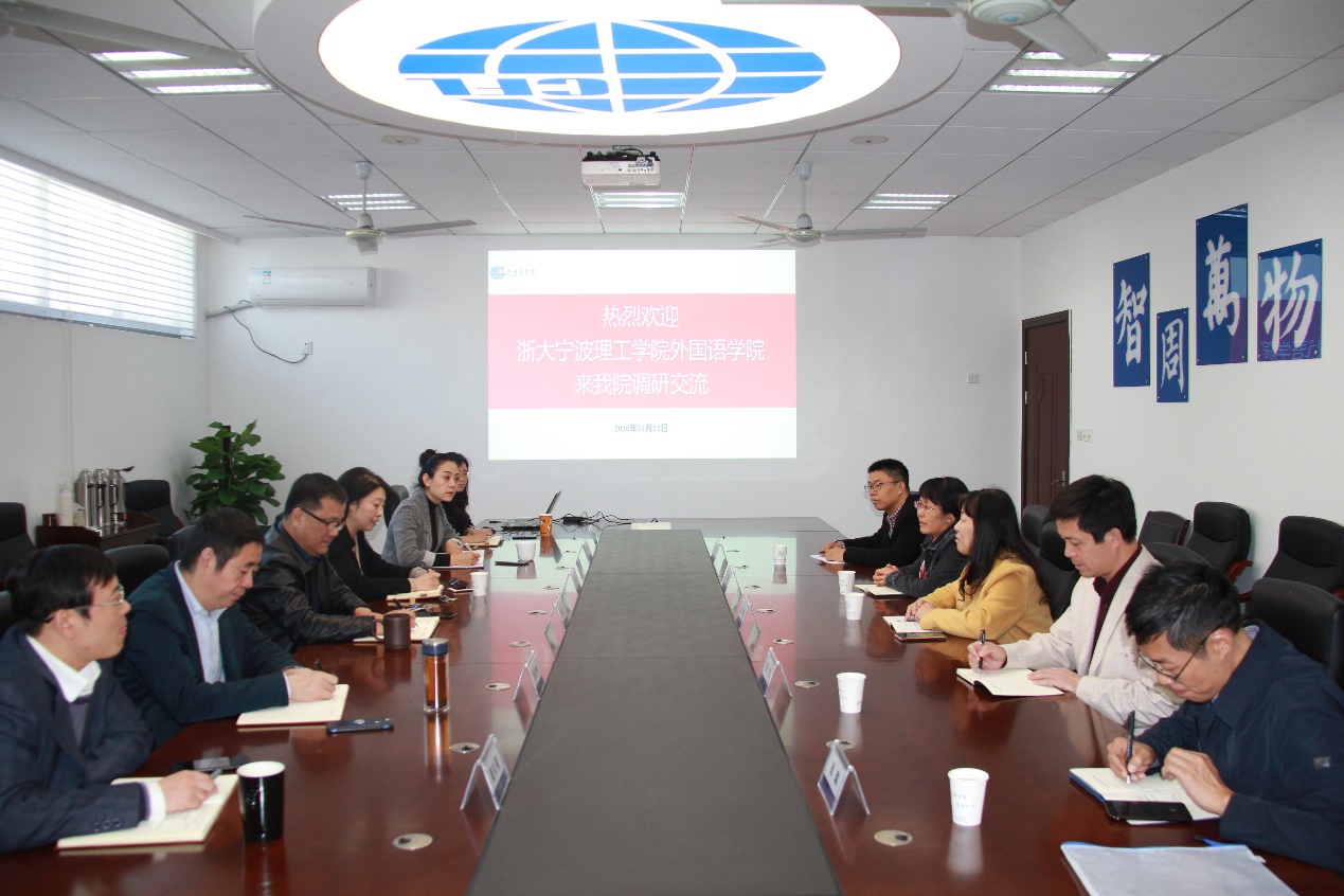11月12日,浙大宁波理工学院必赢国际437官网院长王小潞、党委书记傅晓宇、副院长周汶、党委副书记任凯一行五人来我院调研。院长范祥涛、党委书记左彤云、副院长徐以中、党委副书记梁薇、副院长姜礼福、学院党政办相关人员出席座谈会。