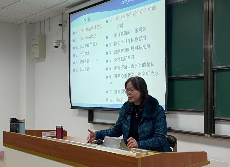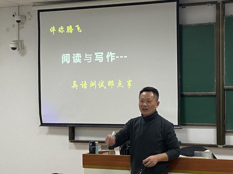 12月1日晚,谢小苑教授立足大学英语学习策略与效率,从学习策略的重要性、学习策略的组成部分、学习策略的实际应用等三个角度切入,层层递进,循循善诱,在轻松愉悦的氛围中讲解英语学习策略和技巧。李迟副教授聚焦英语测试中的阅读写作难点,从策略、技能、技巧的等级差异出发,分析了各类考试的难度、词汇、题型和重点考察能力,以风趣幽默的口吻详述了各类英语测试的特性与共性。