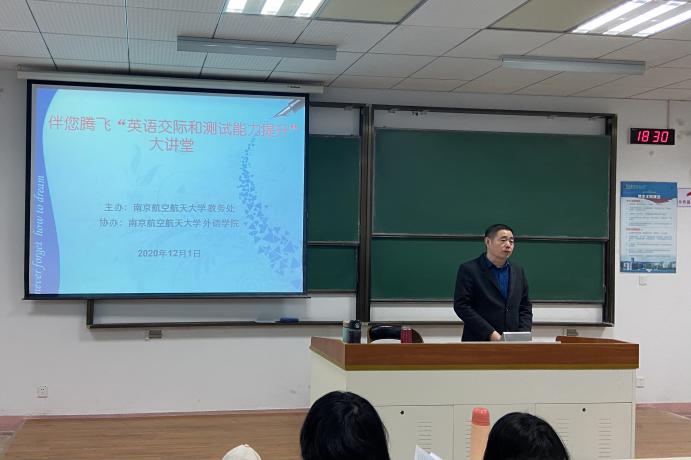 为进一步提升全校学生的英语交际能力以及测试能力,提高外语学习效率和效果,12月1日至2日南航教务处联合必赢国际437官网大学英语教学部、外语学院外语教学与立德树人研究中心举办了“伴你腾飞‘英语交际和测试能力提升’大讲堂”。