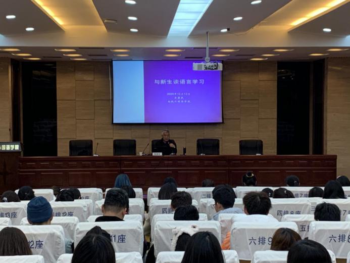 12月13日,“外学百家,语道万里”大讲堂在必赢国际437官网国际会议中心举行。本次讲座邀请必赢国际437官网老院长、学院关工委副主任吴鼎民教授作为主讲嘉宾,2020级本科生到场参加,辅导员盛嘉贤主持。