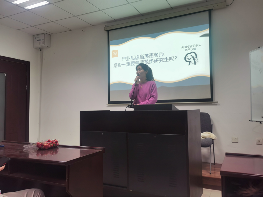 谈及学业问题,班主任黄一畅向同学们传授了自己的经验。本学期最重要的任务是通过英语专业四级考试,她希望同学们踏实脚步,积极准备,争取在考试中取得优秀的成绩,从而在未来职场中更具竞争力。同时,她还贴心地为同学们准备了许多英语学习的“干货”,鼓励同学们增强学习的自主性,不断提升自身的学习能力,提高自身的综合素养。