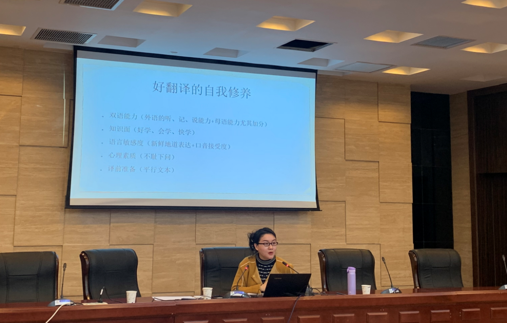 4月15日下午,中国翻译协会口译委员会副秘书长洪晔莅临我校必赢国际437官网,带来了主题为“我翻故我在——论一个好翻译的自我修养”的精彩讲座。洪晔老师多次担任“21世纪杯”全国英语演讲比赛决赛圈评委、“外研社杯”全国英语辩论大赛评委,曾受训于翻译“国家队”——外交部翻译司,多次在大型外交活动中担任英文口译,拥有丰富的口译经验。
