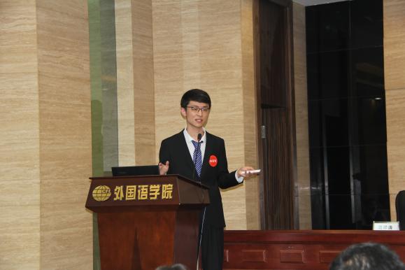 范祥涛在开幕式上致辞,首先祝贺所有选手进入决赛,鼓励同学们开口讲英语,以交流为目的,展示自己的科研成果;同时对研究生公共外语教学部全体老师近几年在教学改革上取得的成效表示肯定,也感谢研外老师们对本次大赛的积极筹备。