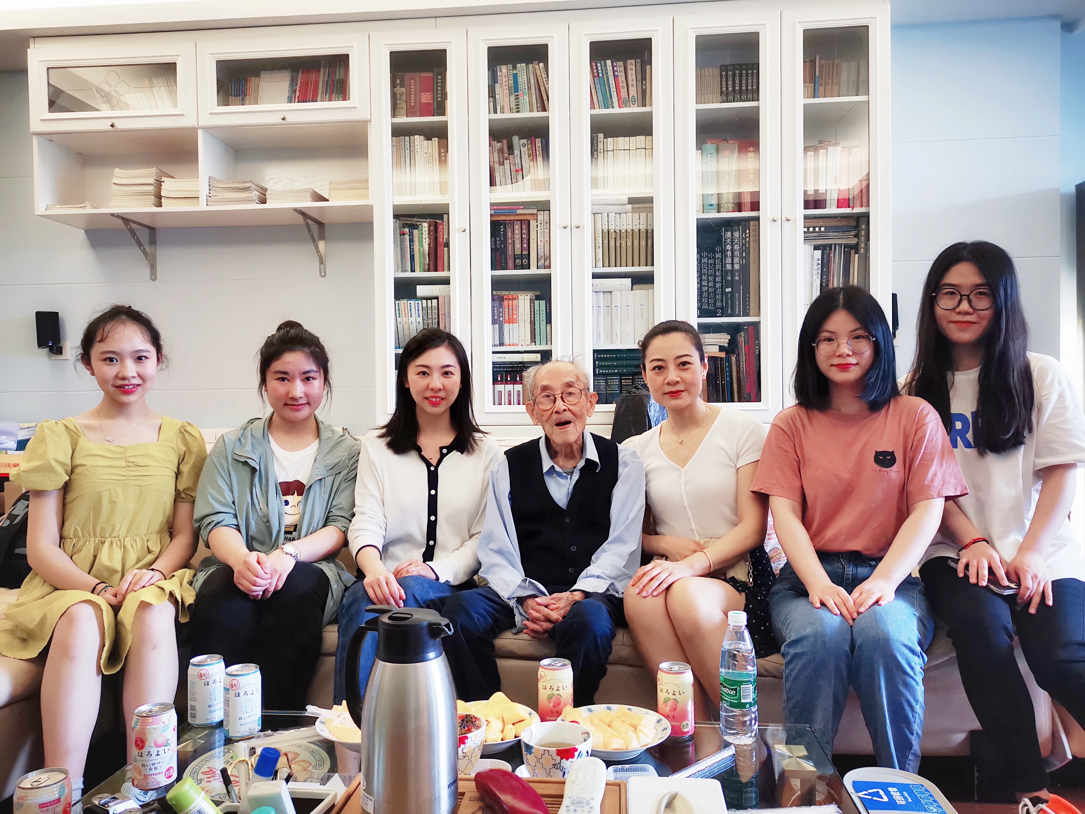 一行人来到许老先生家中,梁薇代表学院给许老送去问候,表达了对许老身体的关心,并向许老汇报了学院近期的发展以及学生取得的可喜成绩。看见许老年逾百岁仍然精神矍铄,同行人员都感到十分欣喜。