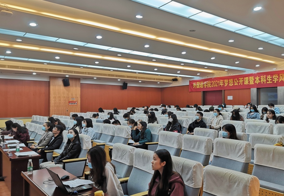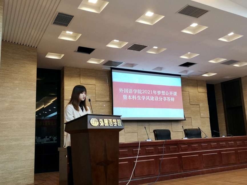 11月5日,必赢国际437官网梦想公开课暨本科生学风建设分享答辩在学院国际会议中心举行。参加本次分享答辩的有学院党委副书记梁薇、日语系副主任钟勇、英语系教师姜上、本科生辅导员彭欢、盛嘉贤和各年级学生代表。