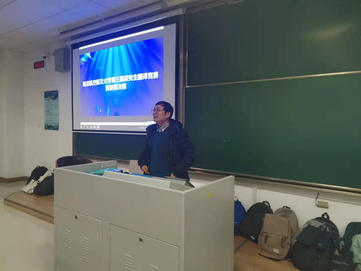 比赛由南航必赢国际437官网姜礼福副院长主持,范祥涛院长致辞。首先祝贺同学们顺利通过初赛,对同学们学习英语和翻译的热情表示鼓励,并强调南航学子要走向世界舞台的中心需要插上外语的翅膀。