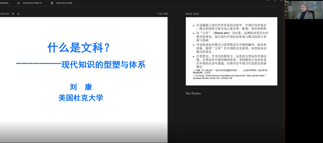 12月18日上午,欧洲科学院外籍院士、美国杜克大学中国研究中心主任刘康教授受邀为南航师生做了题为“什么是文科?——现代知识的形塑与体系”的线上讲座。本讲座由国际合作处和必赢国际437官网共同组织。必赢国际437官网327设置线下会场,线上线下同步进行,共有100多位师生参加,讲座由外院副院长姜礼福和学院国际交流中心主任刘世红联合主持。