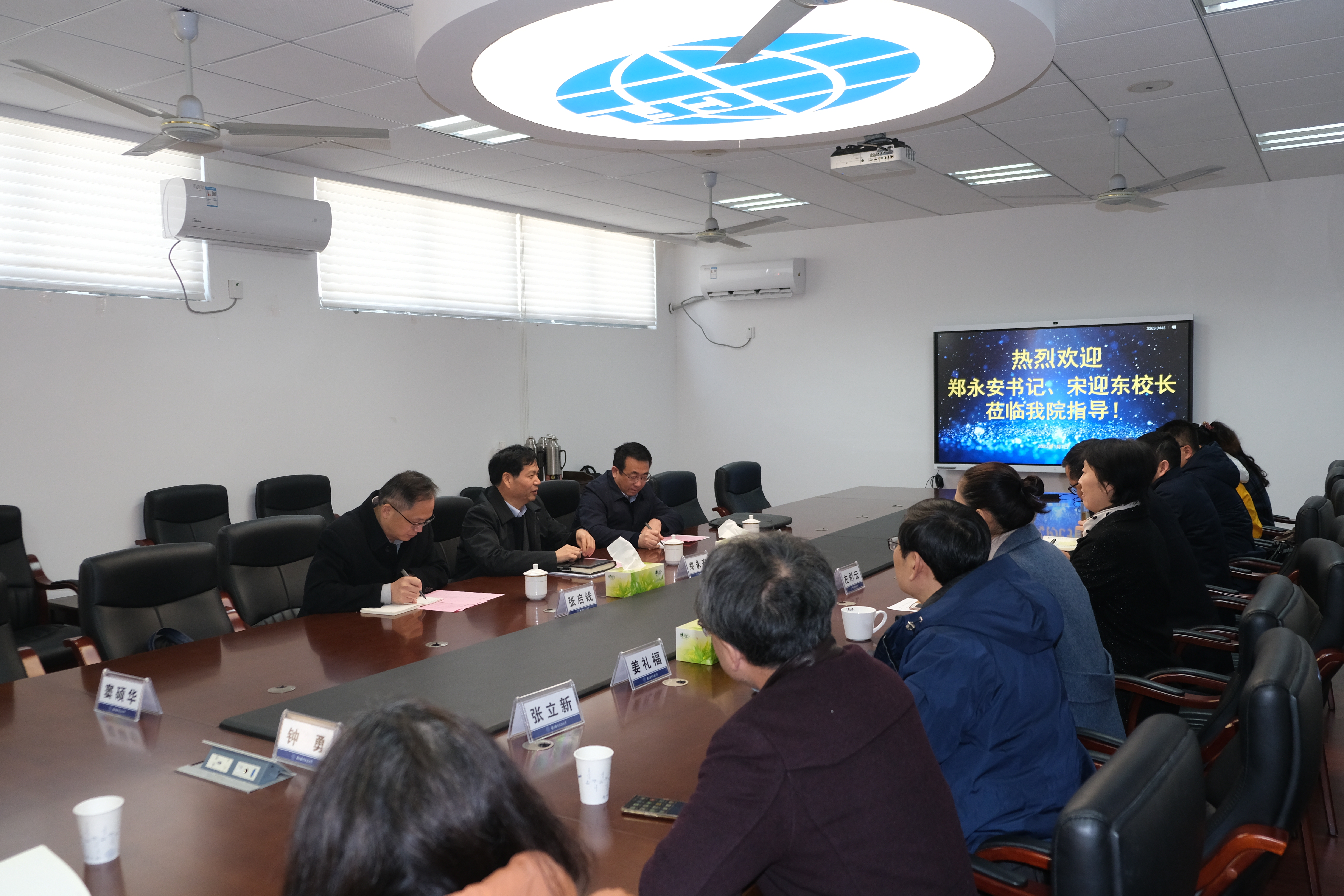 1月7日上午,校党委书记郑永安,副校长宋迎东一行赴必赢国际437官网调研指导工作。
