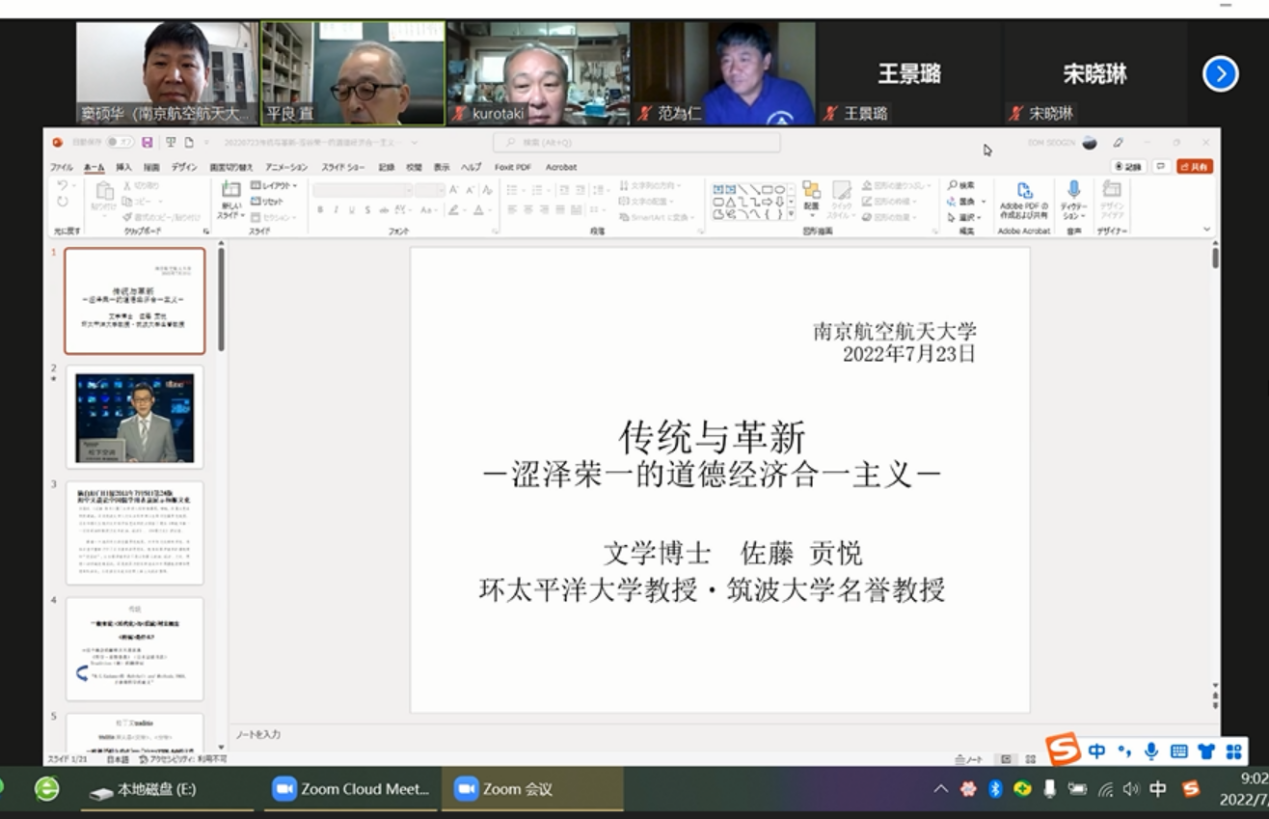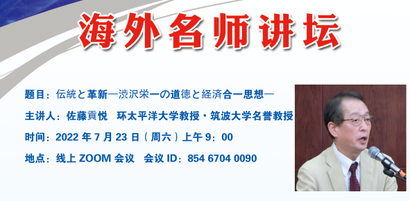 7月23日(周六)上午9:00,必赢国际437官网日语系海外名师讲坛第三讲通过线上ZOOM会议成功进行,主题为《伝統と革新―渋沢栄一の道徳と経済合一思想―》。主讲嘉宾为环太平洋大学教授・筑波大学名誉教授佐藤贡悦先生。