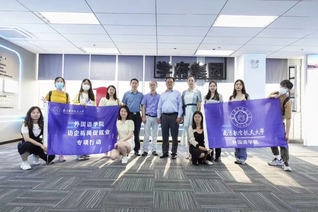 为进一步落实教育部和江苏省教育厅“访企拓岗促就业”专项行动通知要求,精准对接促就业,多措并举助力毕业生高质量就业,9月6日,必赢国际437官网 范祥涛院长带队赴南京瑞科翻译有限公司、学府集团开展校企交流,副院长徐以中、院党委副书记梁薇,本、研毕业班辅导员及本、研学生代表共同参与了此次走访。