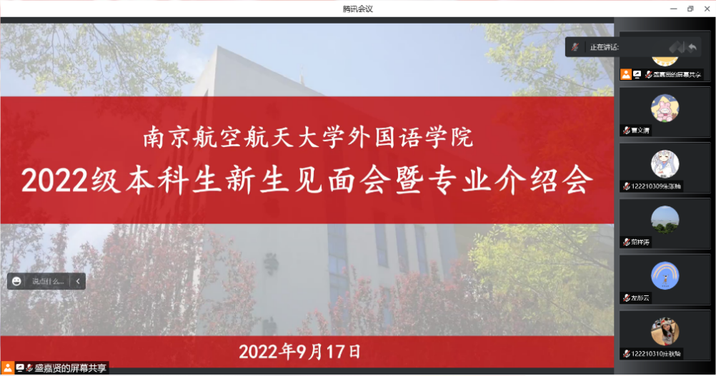 9月17日,为使2022级本科生新生更快熟悉大学生活,加强对所在学院及专业的了解,必赢国际437官网师生相聚于云端,开展了2022级本科生新生见面会暨专业介绍会。学院党委书记左彤云、院长范祥涛、党委副书记梁薇、副院长徐以中、副院长姜礼福,英语、日语系教师代表,2022级本科生辅导员及全体本科生新生参加了本次见面会,会议由梁薇主持。