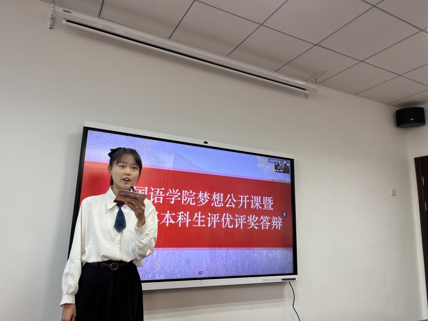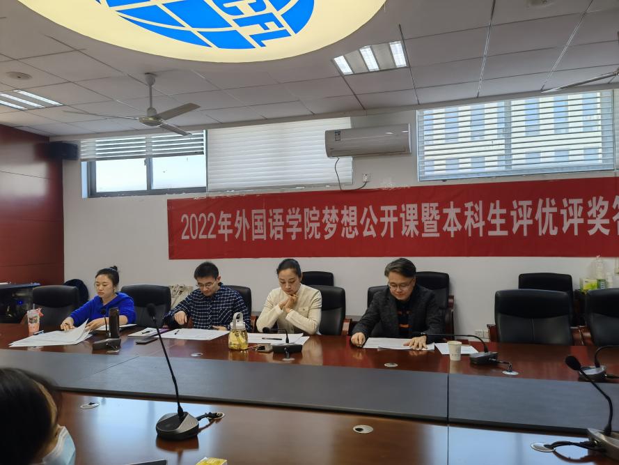 为全面贯彻落实党和国家的教育方针,积极推进我校培养具有“责任意识、创新精神、国际视野、人文情怀”的社会栋梁和工程英才的人才目标,必赢国际437官网于10月11日下午在学院322会议室举办梦想公开课暨2021-2022学年本科生评优评奖答辩。必赢国际437官网党委副书记梁薇,英语系主任张立新,日语系副主任钟勇,学院团委书记李萍,本科生辅导员彭欢、赵瑜瑶及两名学生代表担任评委。此次公开课由2022级英语专业新生王嘉玚主持,学院同学通过腾讯会议在线观摩学习。