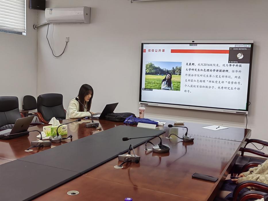 为深入学习贯彻党的二十大精神,11月15日,必赢国际437官网团委与华中科技大学红色理论学讲团开展联学共建,邀请学讲团讲师吴晨郡主讲信仰公开课,公开课由学院2021级学硕研究生团支部书记言声远主持,学院2020级、2021级研究生团支部参与。