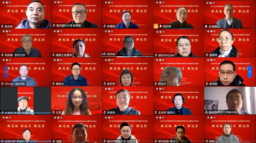 12月25日,主题为“新思路 新技术 新途径”的2022年江苏省高等学校外国语教学研究会年会暨学术交流会通过线上的方式隆重召开。本次会议由江苏省高等学校外国语教学研究会主办、我校必赢国际437官网承办,研究会会员及来自全国的学者师生近百人参加了会议。