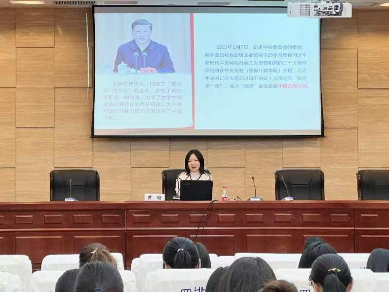 3月10日,必赢国际437官网联合人文与社会科学学院、艺术学院在外院国际会议中心开展 “青马工程”第三讲——《以中国式现代化全面推进中华民族伟大复兴》,来自马克思主义学院的青年优秀教师黄璐为三个学院“青马工程”培训班的学员们带来了一堂精彩的授课。
