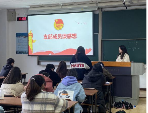 期间,1220101团支部创新活动形式,以“二十大知识知多少?”的知识竞答模式激发支部成员的参与热情。同时,团支书甘文君领学两个重要理论,介绍了“中国式现代化”的内涵和重要意义、全面从严治党的新内涵和要求。除此之外,支部成员奚蕴菲、梅寒和赵子萱等同学就二十大精神和两会精神的个人体悟、青年学生应如何响应二十大号召,谈及了自己的想法和体会。