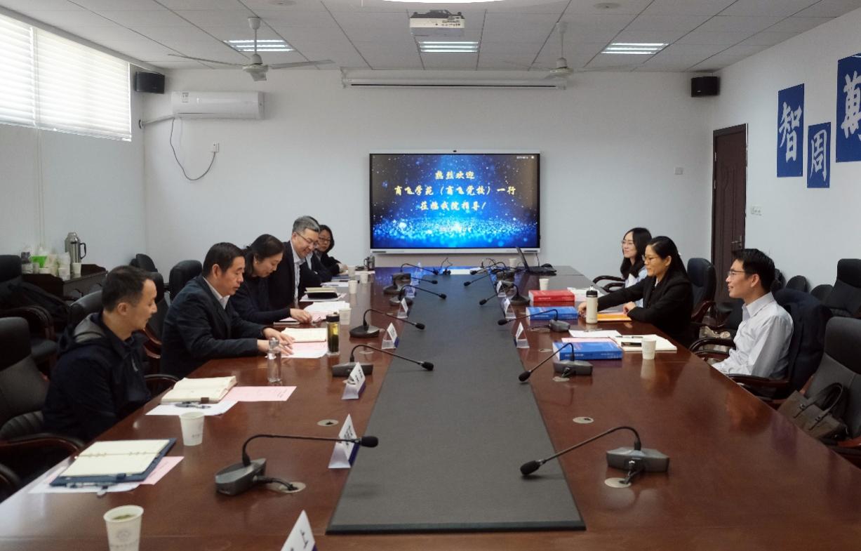 4月12日,中国商飞公司商飞学苑(商飞党校)一行来必赢国际437官网调研交流并召开COMAC航空英语座谈会。必赢国际437官网院长范祥涛、党委书记左彤云、副院长徐以中参加交流,座谈会由徐以中主持。