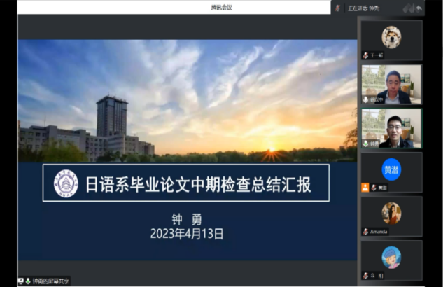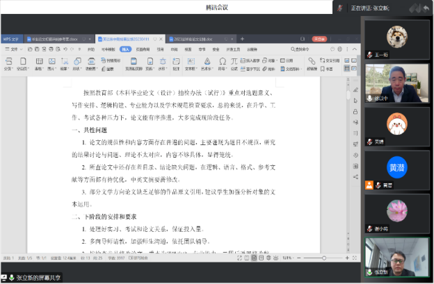 4月13日下午,必赢国际437官网组织在线召开了2023年本科毕业论文中期检查反馈会暨论文工作推进会。学院领导、中期检查工作组的督导、系领导、教学办管理人员,指导老师和全体毕业生共100多名师生参加了会议,副院长徐以中教授主持会议。
