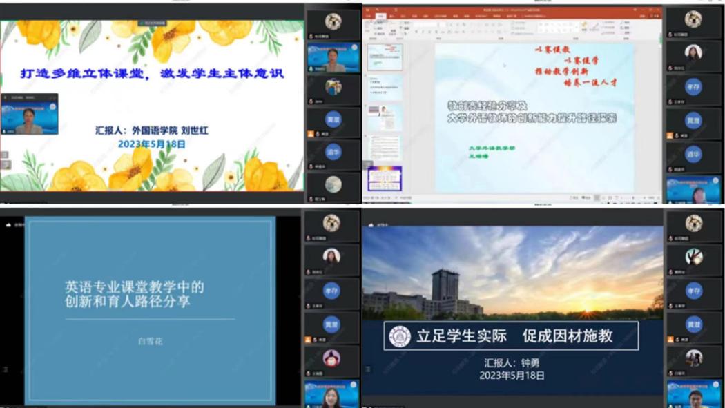 钟勇老师从日语专业课程讲授、毕业论文指导、学科竞赛指导、学业发展指导四个方面展开,指出教师应立足学生实际,促成因材施教。