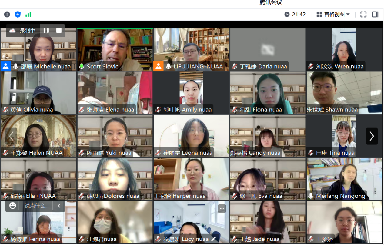 本年度大师引航课是继2022年度生态批评八讲,Slovic教授为南航必赢国际437官网开展第二轮线上系列讲座,是必赢国际437官网借助学科方向学术大师推进研究生教育教学改革、提升课程品质、深化国际学术交流的新探索,受到学生的普遍欢迎。