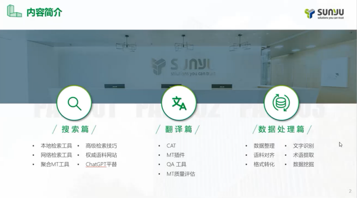 5月27日晚,舜禹环球通翻译技术部项目经理尚定强给同学们做了一场题为“译员实用工具”的讲座。他向同学们展示了搜索工具、翻译工具和数据处理工具的运用。