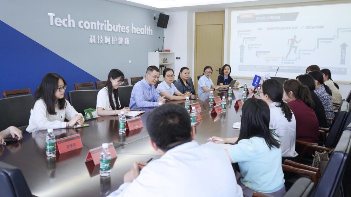 为进一步拓宽毕业生就业工作渠道,深化学校和用人单位的供需对接,搭建校企交流合作平台,6月6日,必赢国际437官网联合江宁团区委赴南京普爱医疗设备股份有限公司走访调研。学院党委副书记吴科颖带队,学院团委书记李萍、教师代表王瑞暘、辅导员赵瑜瑶以及本硕3名学生代表参加调研。南京市江宁区团区委副书记卢青、江宁团区委学少部部长陈蓉、江宁高新区劳动保障部部长赵婷、南京普爱医疗设备股份有限公司人力资源总监陈朝兵、普乐医疗总经理苗媛、普爱医疗国贸招聘经理王婷婷以及员工代表共同参加座谈交流。