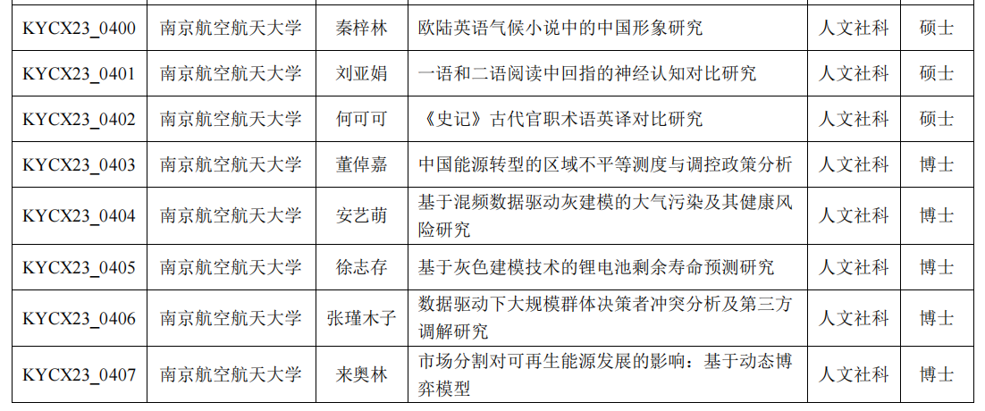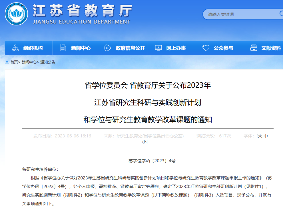 近日,江苏省学位委员会和省教育厅公布2023年江苏省研究生科研与实践创新计划和学位与研究生教育教学改革课题,必赢国际437官网硕士研究生在研究生科研创新计划项目申报中取得佳绩,成功获批3项。3个课题涉及文学、语言学和翻译方向,分别为秦梓林的“欧陆英语气候小说中的中国形象研究”(KYCX23_0400)、刘亚娟的“一语和二语阅读中回指的神经认知对比研究”(KYCX23_0401 )和何可可的“《史记》古代官职术语英译对比研究”(KYCX23_0402),这也是必赢国际437官网硕士研究生首次获批省研究生科研创新计划项目。