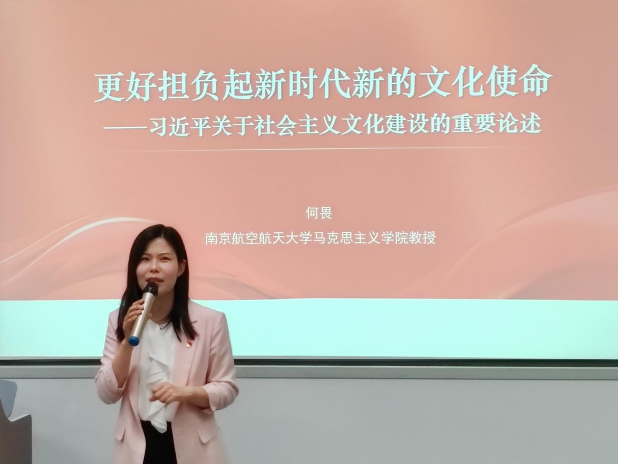 本次师生读书班邀请了马克思主义学院副院长何畏,就“习近平关于社会主义文化建设的重要论述”进行主题分享。通过对习近平关于文化建设重要论述提出的时代背景、主要内容、战略意义等方面的阐述,何畏指出,习近平关于文化建设的重要论述体现了鲜明的实践性与总体性、民族性与时代性、现实性与理想性、包容性与原则性的高度统一,为中华民族文化传承指明了方向,为人类文明交流互鉴提供了中国方案,为中国共产党巩固执政基础凝聚思想保障、为人民日益增长的美好生活需要培育了文化土壤。作为新时代青年学子,首先,要始终坚持党对意识形态的领导权,坚决反对历史虚无主义,时刻警惕地敌对势力对我国的渗透遏制;其次,要坚决贯彻落实“四个自信”,将文化繁荣与中华民族伟大复兴密切联系起来,在正确认识党的文化使命与文明定位的基础上,共同建设中华民族现代文明;最后,利用大众文化讲好中国故事,推动中华文化更好走向世界。与会师生积极互动,就共同感兴趣的“中外大众视角中的中国”等话题展开了深入交流。