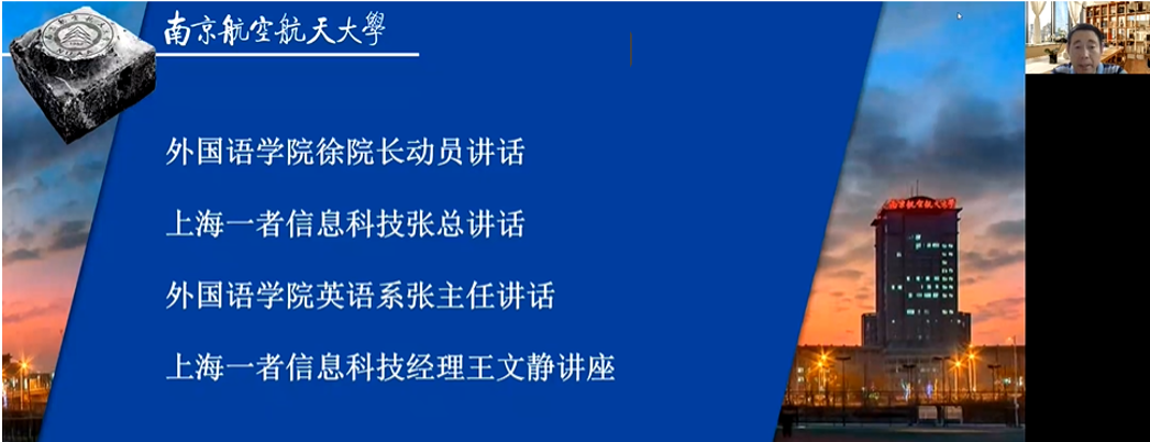 7月25日,南航必赢国际437官网副院长徐以中、英语系主任张立新、航空英语研究中心主任王孝存、一者科技CEO张井、一者科技运营经理王文静与英语专业暑期“企业项目式”实习的各项目组成员出席民航语料库建库培训系列讲座动员大会。