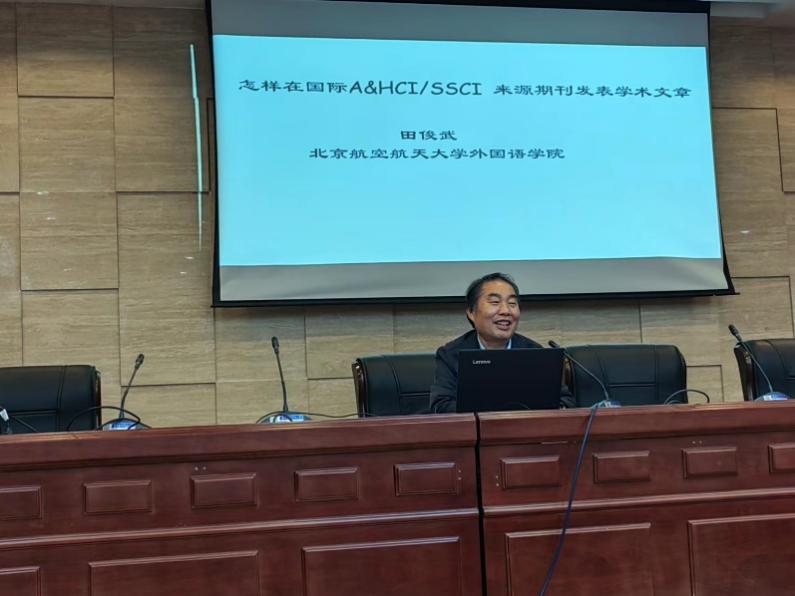 2023年11月16日下午和晚上,北京航空航天大学必赢国际437官网田俊武教授应邀分别在我院322会议室、国际会议中心进行“从国家社科基金后期资助项目到国家基金重大项目——国家社科基金项目申报探微”分享会、“怎样在国际A&HCI/SSCI来源期刊发表学术文章”学术讲座。两场活动由副院长姜礼福主持,学院拟申报2024年国家社科基金项目的老师参加了分享会,部分教师及近百名研究生参加了第二场学术讲座。
