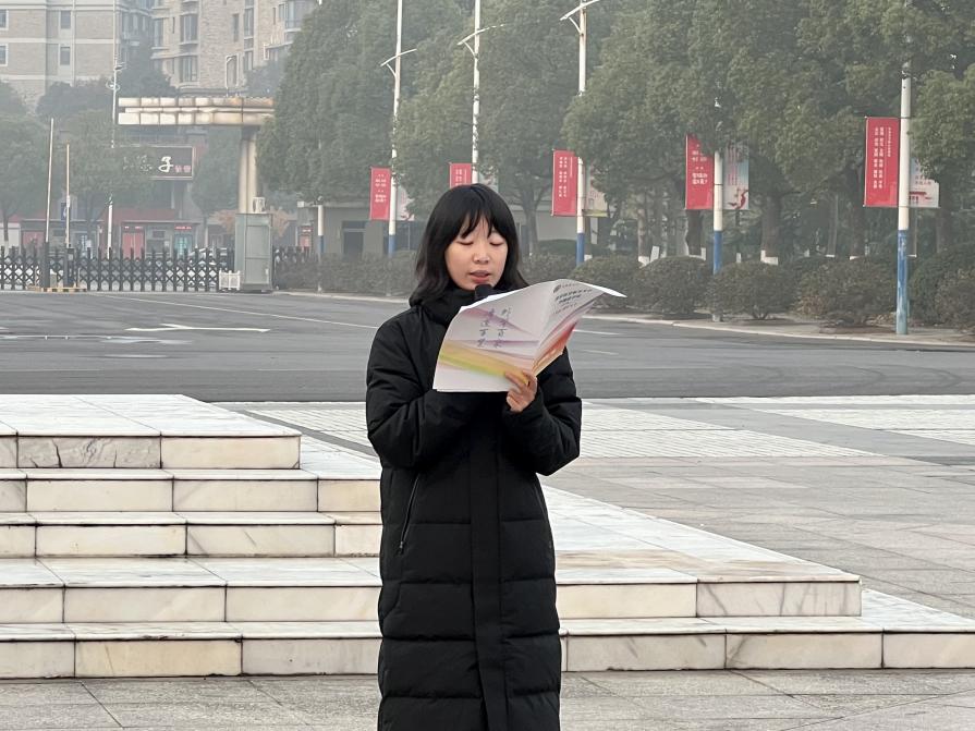 2023级团总支书记林子璇发言。她讲述了“一二·九运动”的历史背景,呼吁吾辈青年铭记历史,勿忘国耻,传承红色基因,谱写复兴华章。