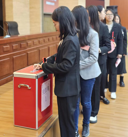 大会通过民主选举,产生了徐佳凝等三名必赢国际437官网第三届学生会主席团成员,邓昱欣等三名第三届研究生会主席团成员,许欣宜、王新怡等九名学生委员会委员,王一珩、祝加利等六名研究生委员会委员。大会在庄严的校歌声中顺利闭幕。