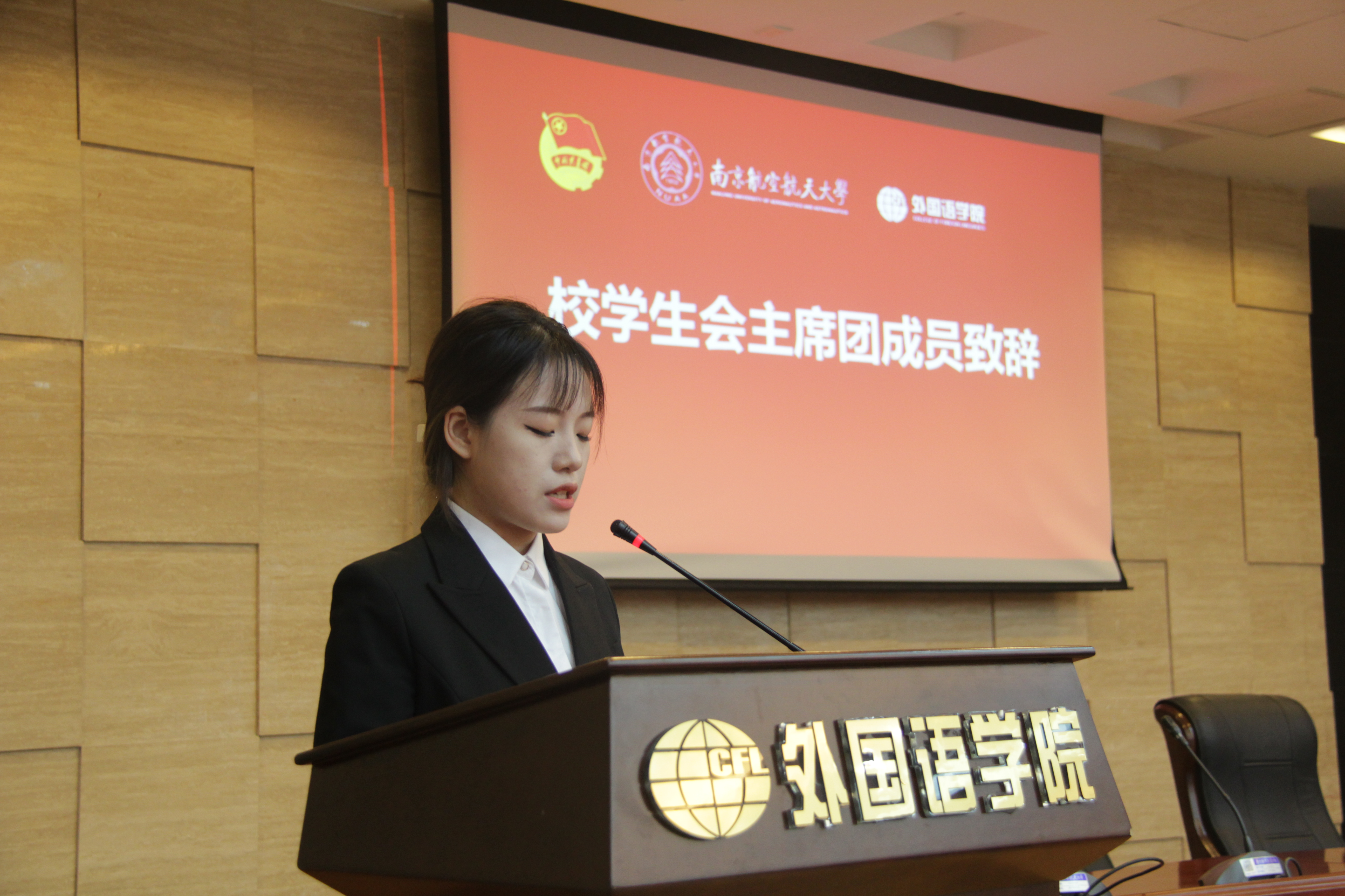 随后,吴科颖致辞,她代表学院党委对大会的召开表述热烈祝贺,并在发言中对新一届学生会、研究生会提出明确要求。她强调,青年学生是国家和民族的未来,希望同学们能够主动加强对于习近平新时代中国特色社会主义思想的学习与实践,坚定理想信念,勇于担当责任,锤炼自身能力,认真履职,争做堪当民族复兴重任的时代新人。