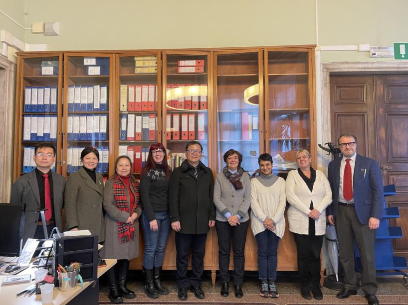 代表团与欧洲科学院院士、人文学院副院长劳拉·科隆比诺及教授们合影留念