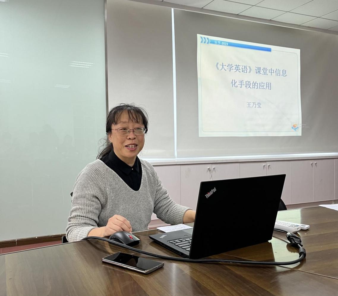 王乃莹老师以大学英语III为例,介绍信息技术在英语教学中的应用,实现“双线融合”教学模式。王老师通过展示自己的超星学习通平台,分享了如何利用学习通的活动、通知、考试等功能,建设教学资料库,量化学习效果过程性评估,实现pre-test和post-test。另外,还和老师们分享了借助“词达人”公众号平台辅助英语词汇学习与考核。