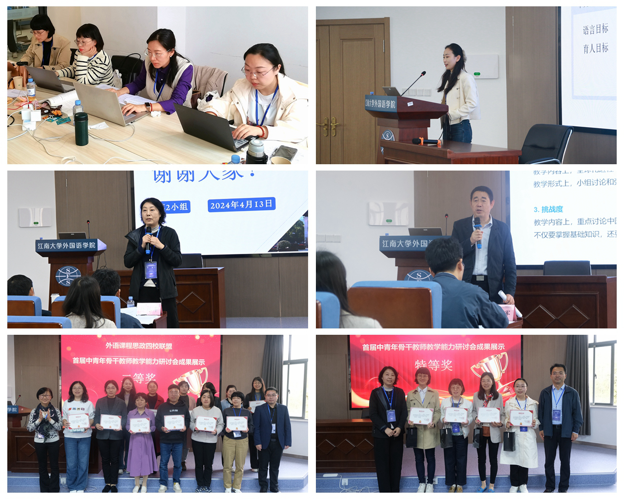 4月12-13日,外语课程思政四校联盟首届中青年骨干教师教学能力研讨会在江南大学必赢国际437官网召开。由南京航空航天大学、南京理工大学、江南大学、河海大学共同组建的外语课程思政四校联盟,旨在统筹四校外语课程思政育人资源,打造具有一定区域特色的“课程思政品牌”,也是四校联盟推进落实高校外语思想政治教育体系,落实外语教育立德树人根本任务的重要实践和落地举措。必赢国际437官网党委书记左彤云、副院长徐以中及骨干教师参会。