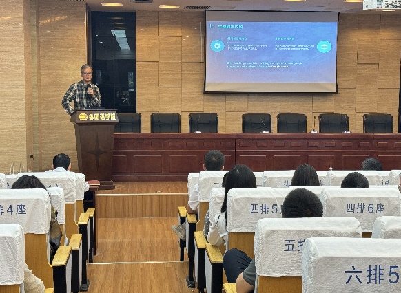 南京大学王海啸教授来院讲授“生成式人工智能辅助大学英语课程建设”专题讲座。