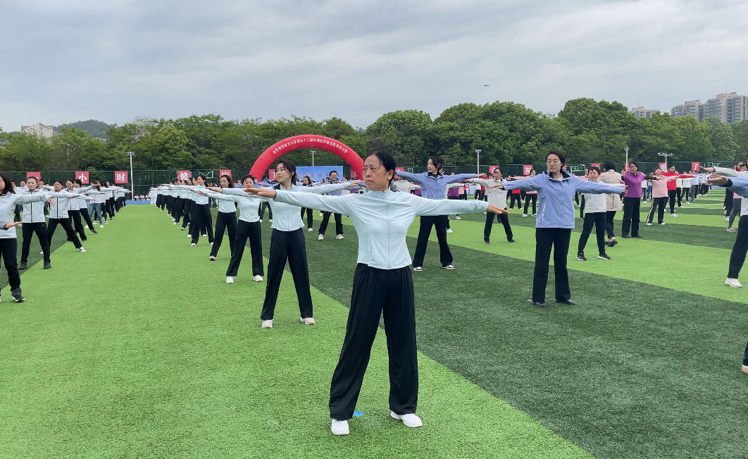 此外,在学校第六十二届运动会开幕式上,由20名学院教职工代表组成的广播操方队,意气风发、精神饱满、动作标准,将所有人青春回忆里永不褪色的广播体操活力重现。
