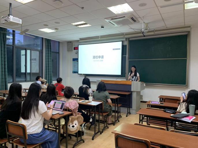 首先,王雨柔介绍了香港大学、香港中文大学等院校与专业,讲述了地区选择、学校选择与策略方法,并就申请的前期准备、申请流程以及申请中的注意事项进行详细分享。她从择校信息搜集、申请时间规划、文书申请、投递面试等方面为大家分享自己的经验,并通过与同学们的互动,进一步帮助同学们了解留学准备流程。