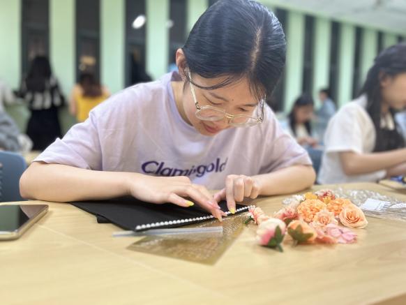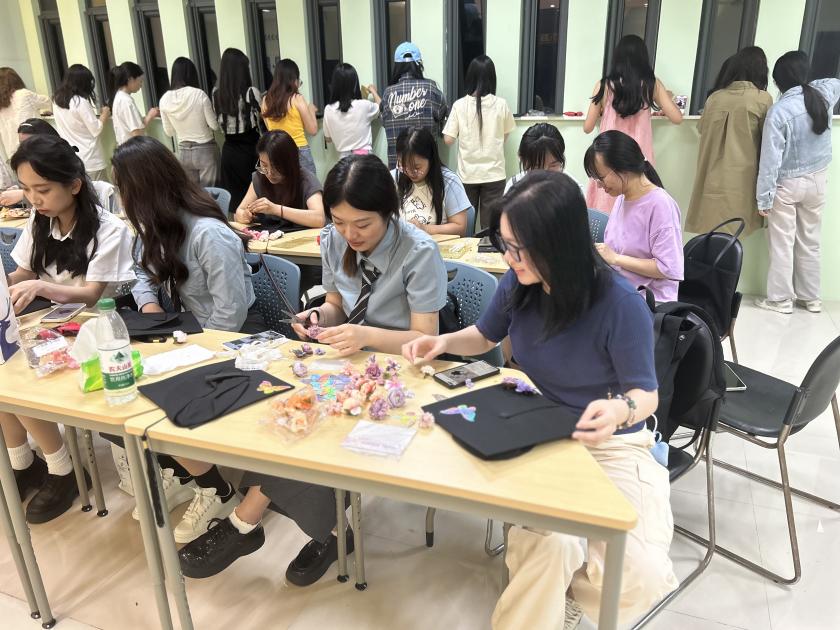 6月5日,必赢国际437官网组织“语”你相遇,未来可期系列毕业活动——创意簪花。本次活动传承簪花为饰的习俗,为同学们提供亲手装点学士帽的机会,让毕业季不仅有“仪式感”,更有“文化味”。